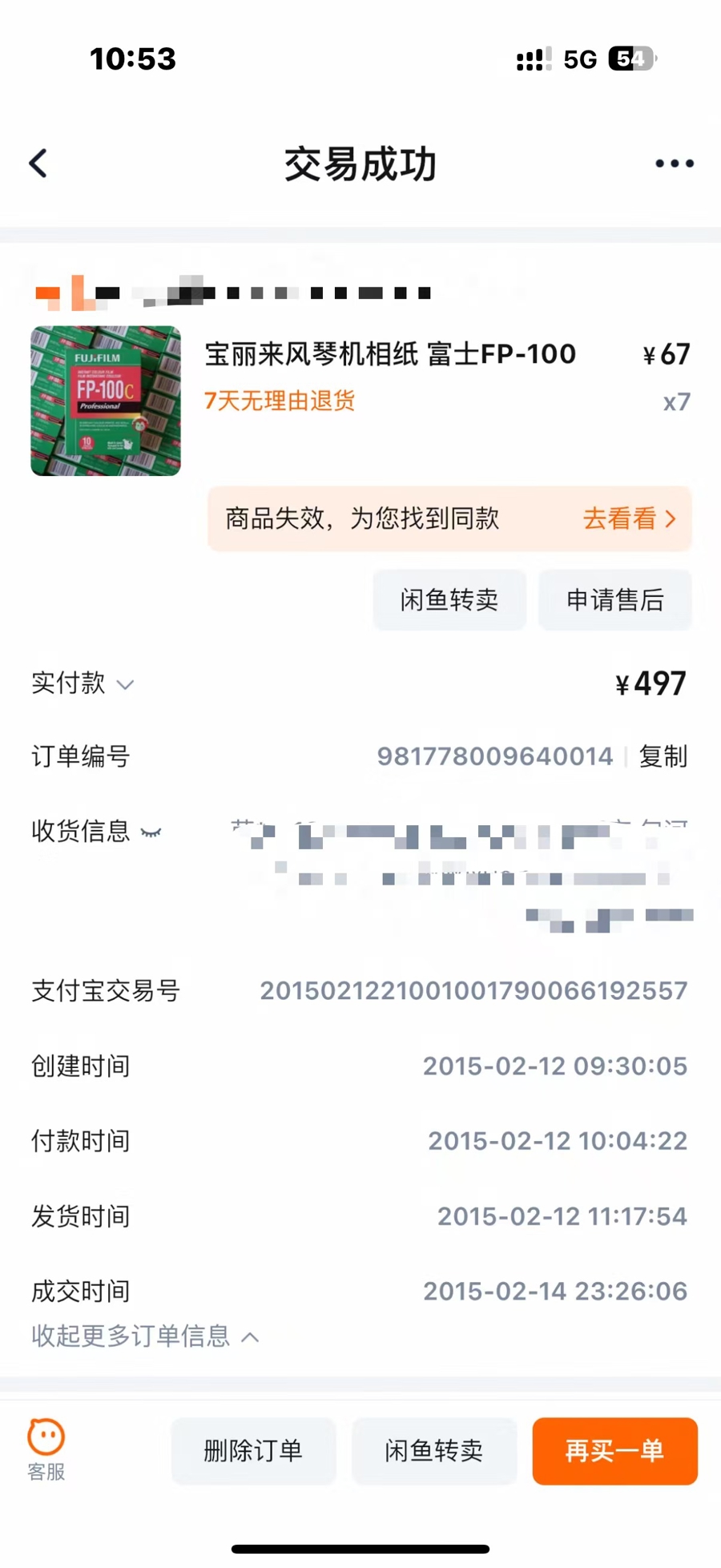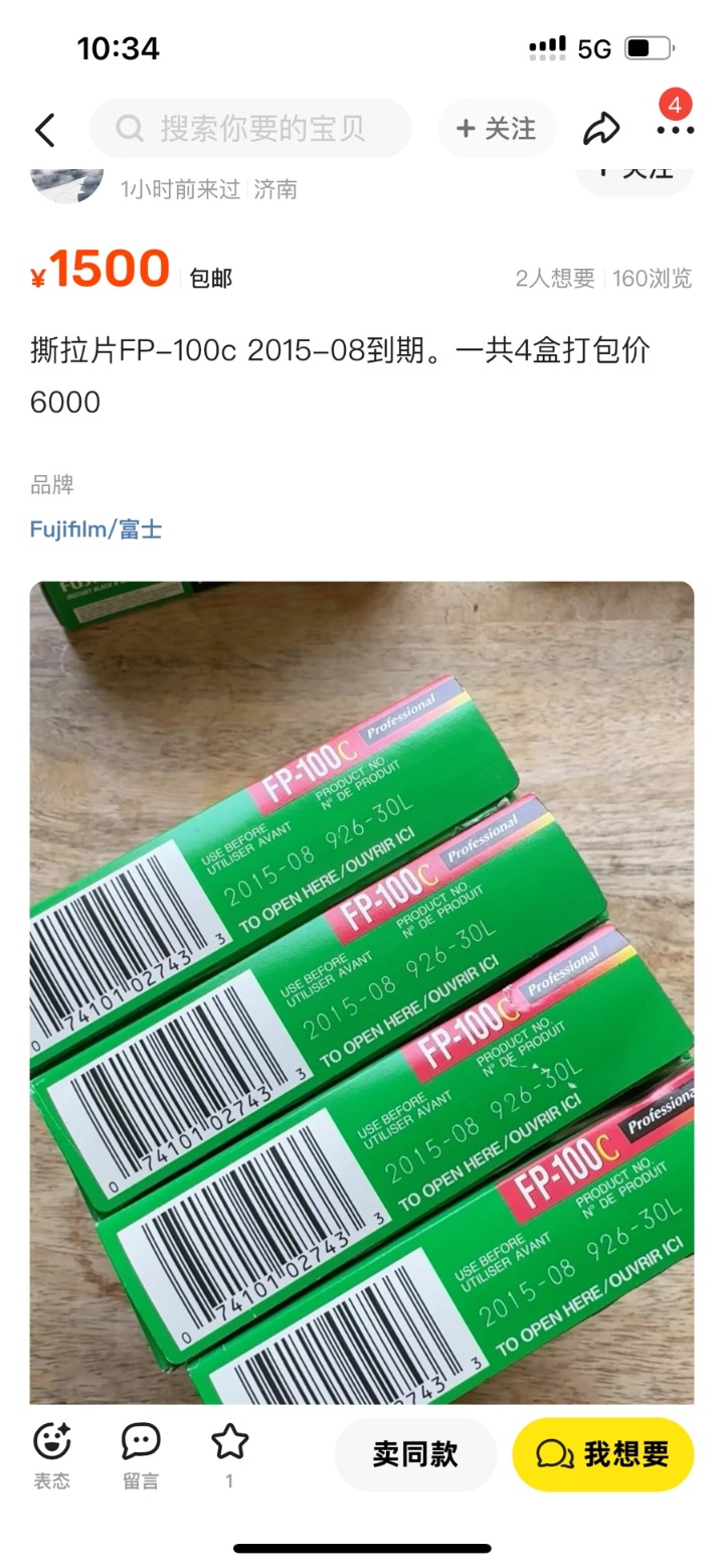强尼给记者出示了他2015年购买的撕拉片相纸价格,当时一盒FP-100c的售价仅67元。但最近如果在闲鱼等二手网站搜索撕拉片,会发现一盒撕拉片的价格已经炒到了数百乃至数千元不等。尽管都是“过期”胶片,但撕拉片的价格仍与其保质期有关。在二手网站上,一盒2015年8月到期的撕拉片FP-100c,售价为1500元。而一盒2018年10月到期的撕拉片FP-100c,有卖家则开出了2400元的高价。至于低于千元价格的FP-100c,可能早在2007年4月就过期了。
